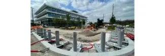 Après la transformation de la circulation et la végétalisation de la rue de la Chapelle, la finalisation du parvis Alice Milliat sur la rive gauche de l’avenue de la Porte de la Chapelle, est en cours en ce printemps 2025. Garance se réjouit que tous les arbres existants, ou presque, aient trouvé leur place dans ce nouveau schéma de circulation. Un seul arbre a dû être finalement abattu, mais le hêtre et les deux pins noirs ont été sauvés et on leur a associé une strate basse pour les mettre en valeur. Plusieurs grandes fosses parallèles ont dû être creusées pour installer les hautes tiges des nouveaux arbres d’alignement. Ils isoleront la circulation des automobiles et celle des vélos, de la partie entièrement piétonne et équipée d’une vingtaine de bancs en pierre adossés aux massifs.